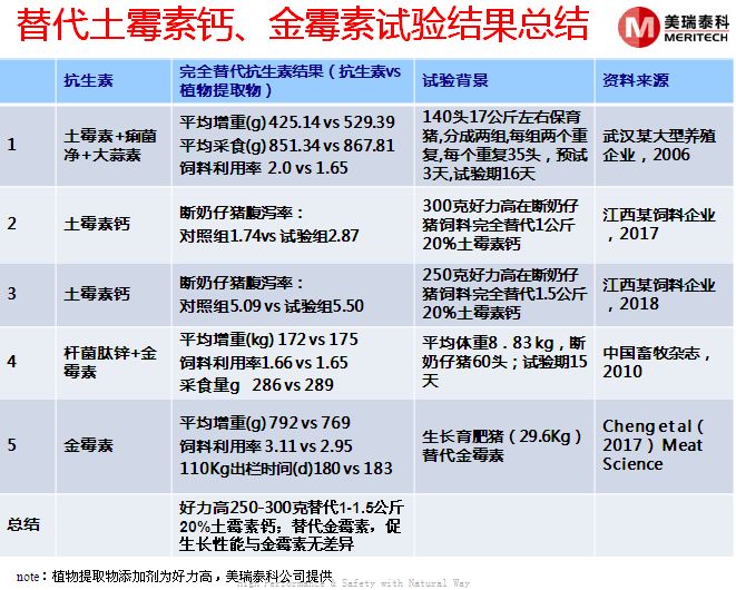 十二年之前成立的美瑞泰科,作为“减抗替抗的践行者”,已经主办或赞助了近百场无抗技术与推广会议,并与国内外60%以上的优秀企业保持良好的合作。在国内外培养了30多名硕士博士研究生,并发表了近50篇SCI研究文章和获得了20多项国家发明专利!本次会议中公司技术副总监杨江涛硕士总结了美瑞泰科旗舰产品好力高在无抗中的研究总结,从早期替代一个抗生素如硫酸粘杆菌素,到近几年来逐步替代2-3个抗生素如土霉素钙和金霉素等,和欧洲试验与实践完全替代抗生素,都取得了满意的效果(下图)。