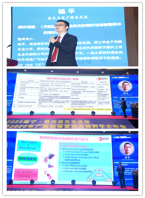 11月4-6日,“第四届东东论论坛暨广西动物营养与饲料学术年会”在广西南宁盛大召开。贴合本次会议主题——“无抗营养创新”,美瑞泰科公司作为无抗领航者,受邀为本次论坛作学术报告。